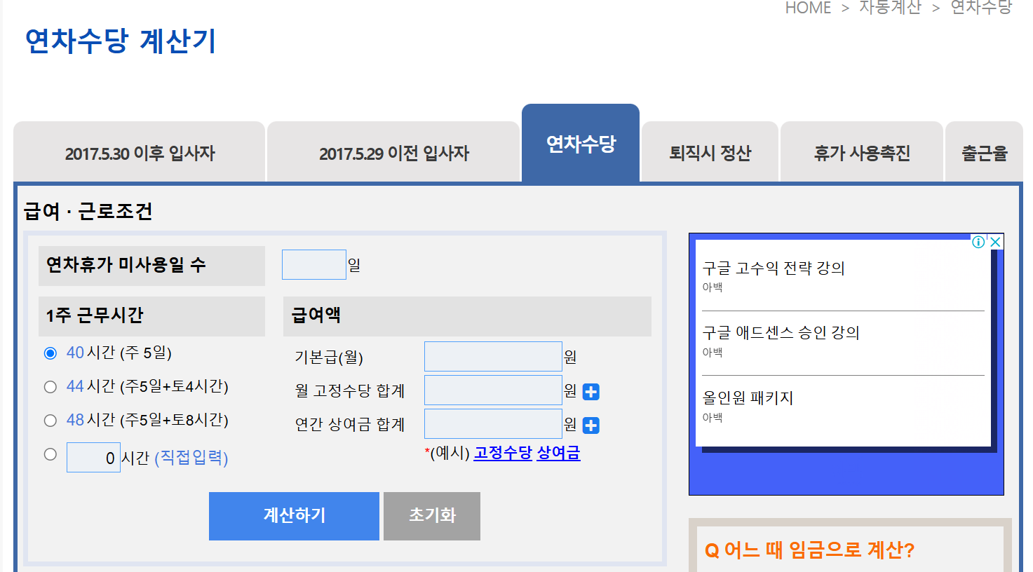 연차 수당 계산기 사용법
